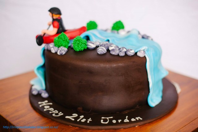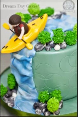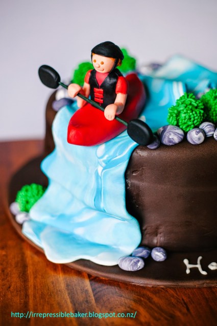 This month I’ve focussed on my first commissioned cake – a 21st birthday cake for the son of a lovely (and very trusting!) friend of mine. According to my friend, a personalised kayaker heading down a fearful waterfall is the epitome of her son’s experience as a professional sportsman. And so I learnt how to make the figurine – my first sugarpaste model ever – and the other decorations from this image that I was given to base the design on: