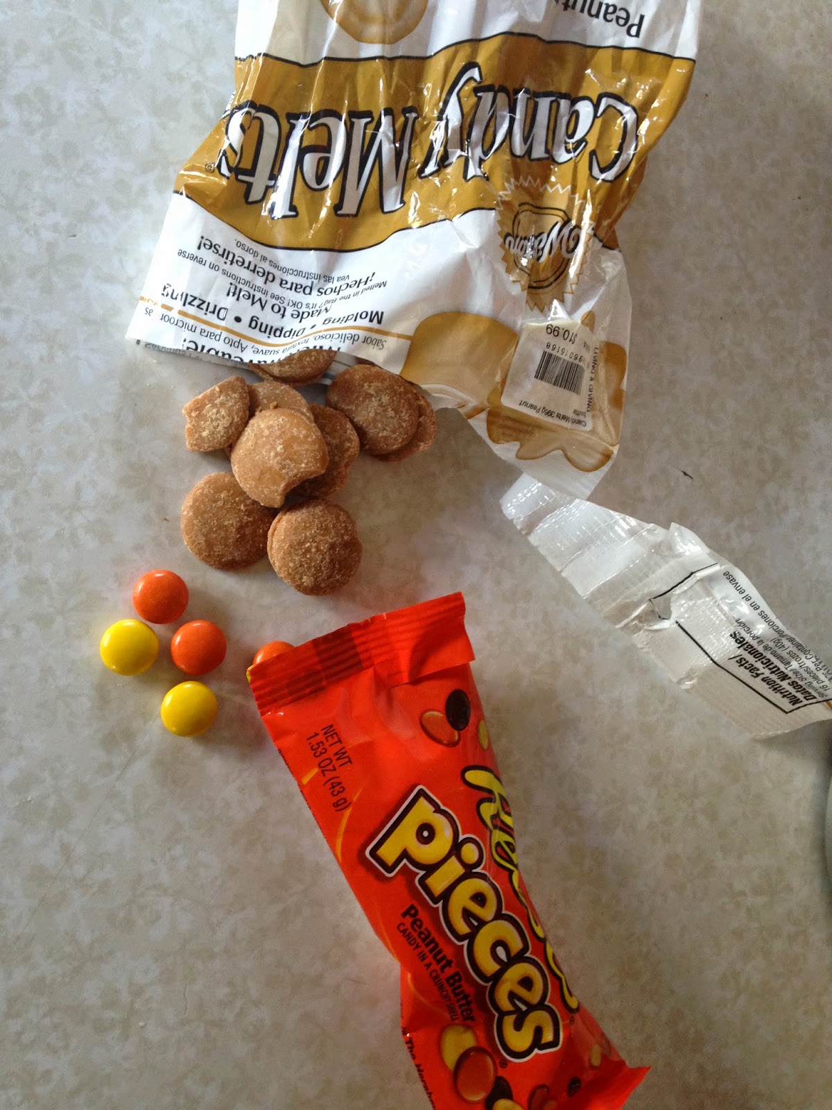 1 cup of peanut butter melts and candies e.g. Reeses Pieces