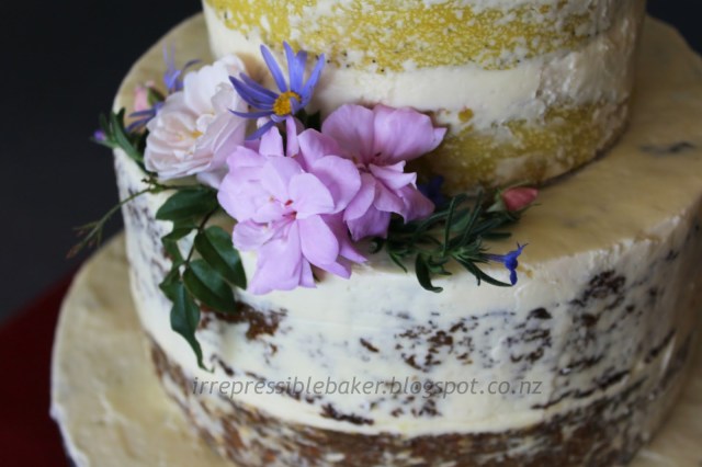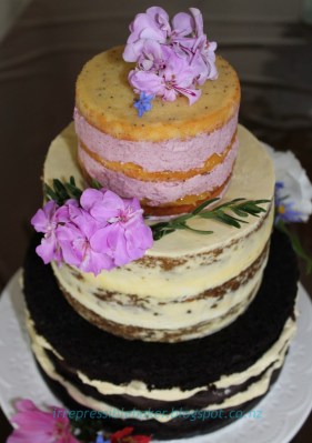 C & K love Chocolate Guinness cake (and each other of course! <3) so the base of their cake had to be that flavour. Classic carrot cake (I believe I used Annabel Langbein’s recipe) won out for the middle tier, and some lovely and light lemon poppyseed for the top tier. Given that I had only ever seen naked cakes made with the same flavour (or at least the same colour) for each tier, I did a practice run of the cake…
