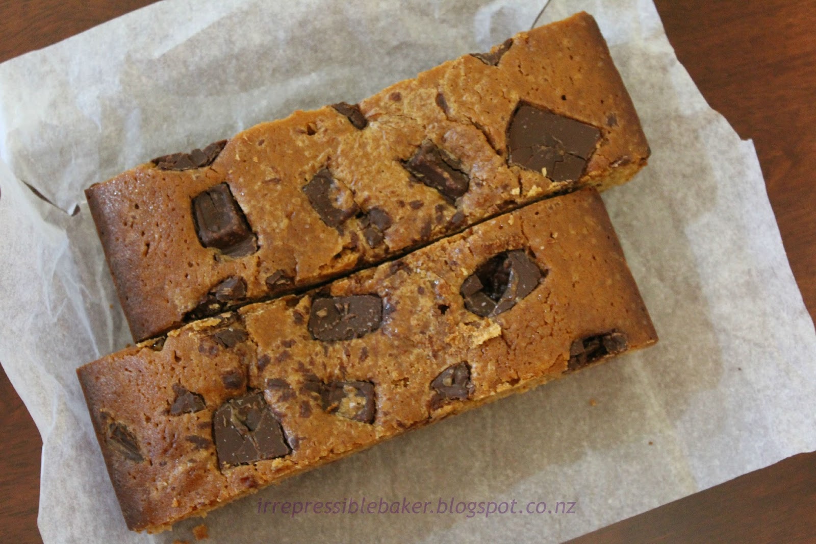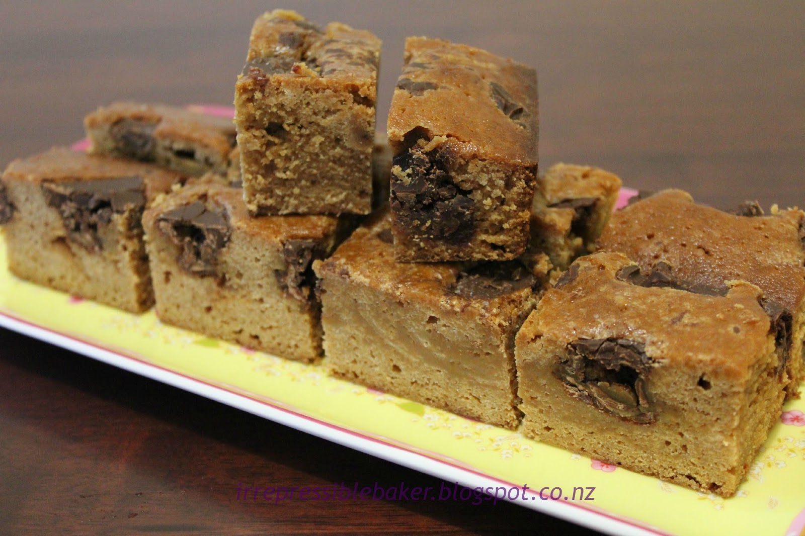 Why am I attempting silly Bond-jokes and (seemingly) infatuated with light hair colour? I don’t mean blond(e) in the hair sense, but in the confection sense. In case you haven’t encountered it before, blondie is a dense slice similar to brownie except without cocoa and instead with a vanilla or butterscotch flavour.
