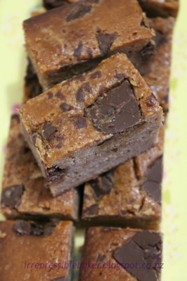 Yeah, I’ve obviously been trying hard to think of a clever story about this recipe, but I don’t have much to work with… However it is my own recipe, so I do feel clever about that, having combined and refined my fave choc brownie recipe (Whittakers) plus Donna Hay’s salted caramel and choc brownie (which really seems like a blondie to me).