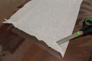 Take out the paper and cut from its corners to the indented corners on diagonals.