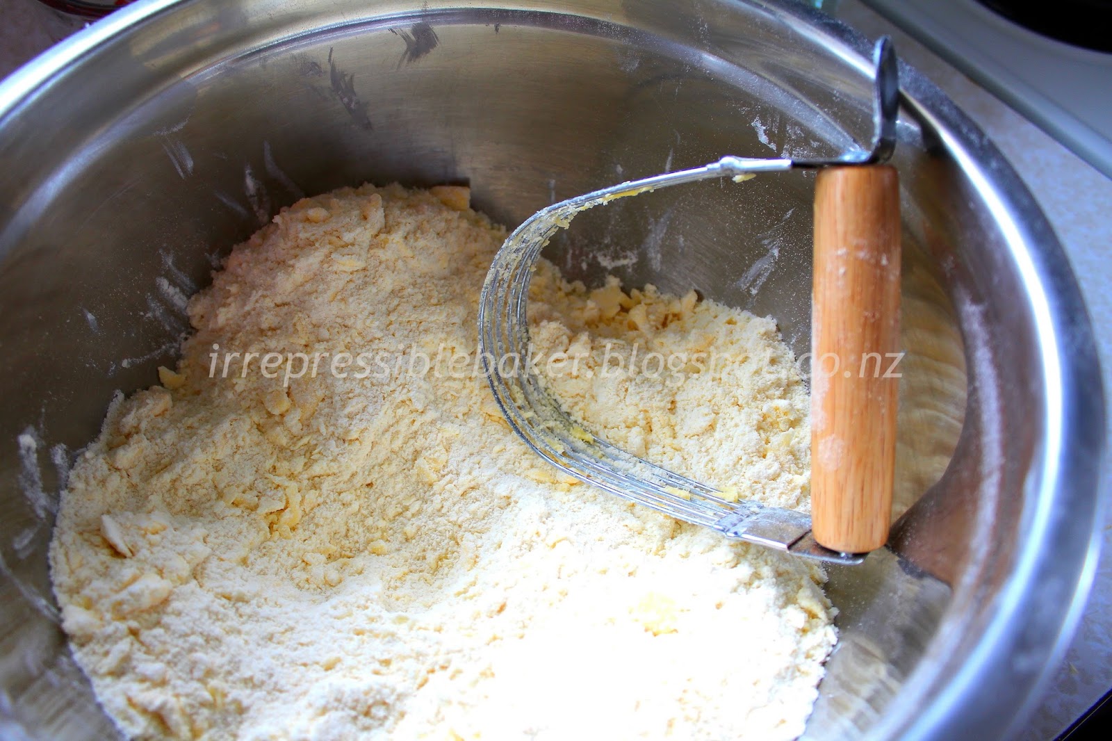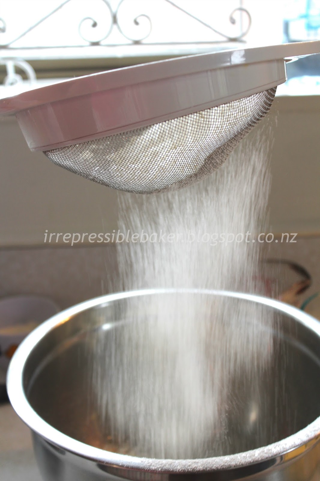 Sieve the flour and icing sugar “from a height” into a deep bowl.
