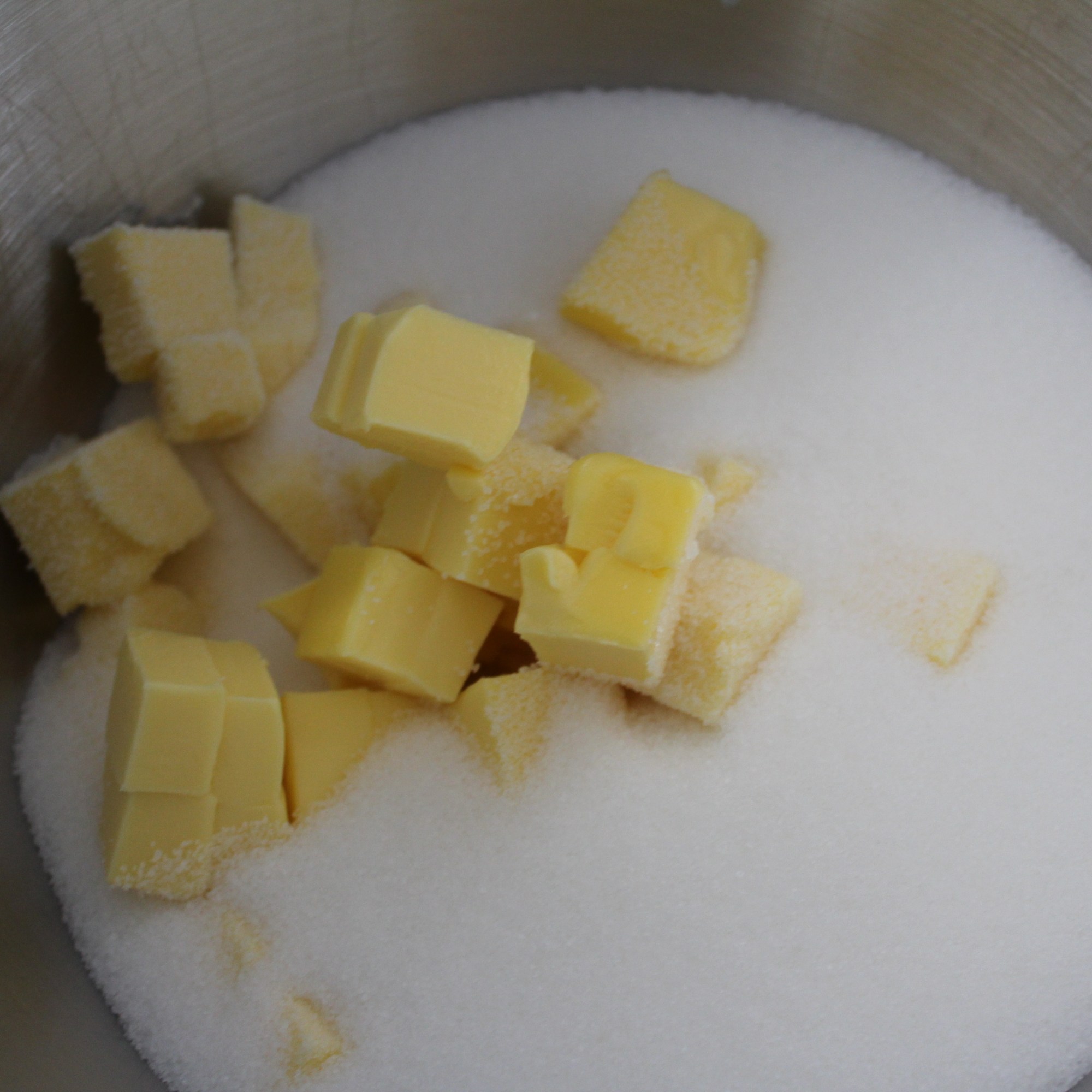 - Crack the eggs into a small jug and add the vanilla. With the beater running at slow speed, add the eggs one at a time to the sugar-butter mixture, letting each one beat-in before adding the next.