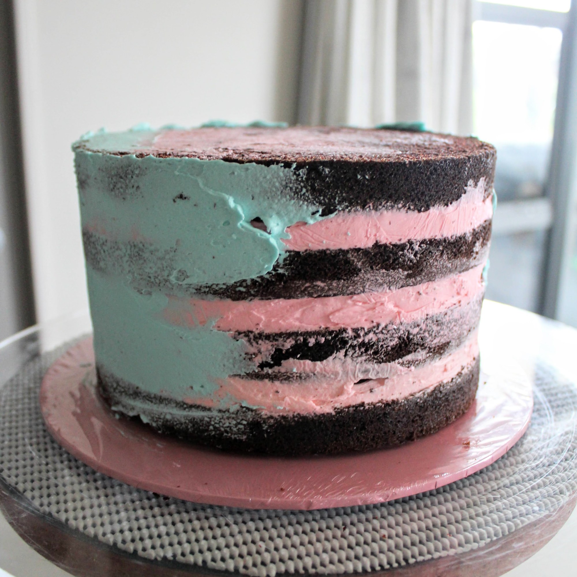 I’ve put some process notes and photos showing how the cake came together, including that ombré/blended buttercream effect. This is slightly different to the watercolour effect I’ve shown before, where you still want the different colours to be distinguished where they meet. Making it ombré involved just a little more blending at the boundary, kind of making a purple tone (pink + blue = ?!)
