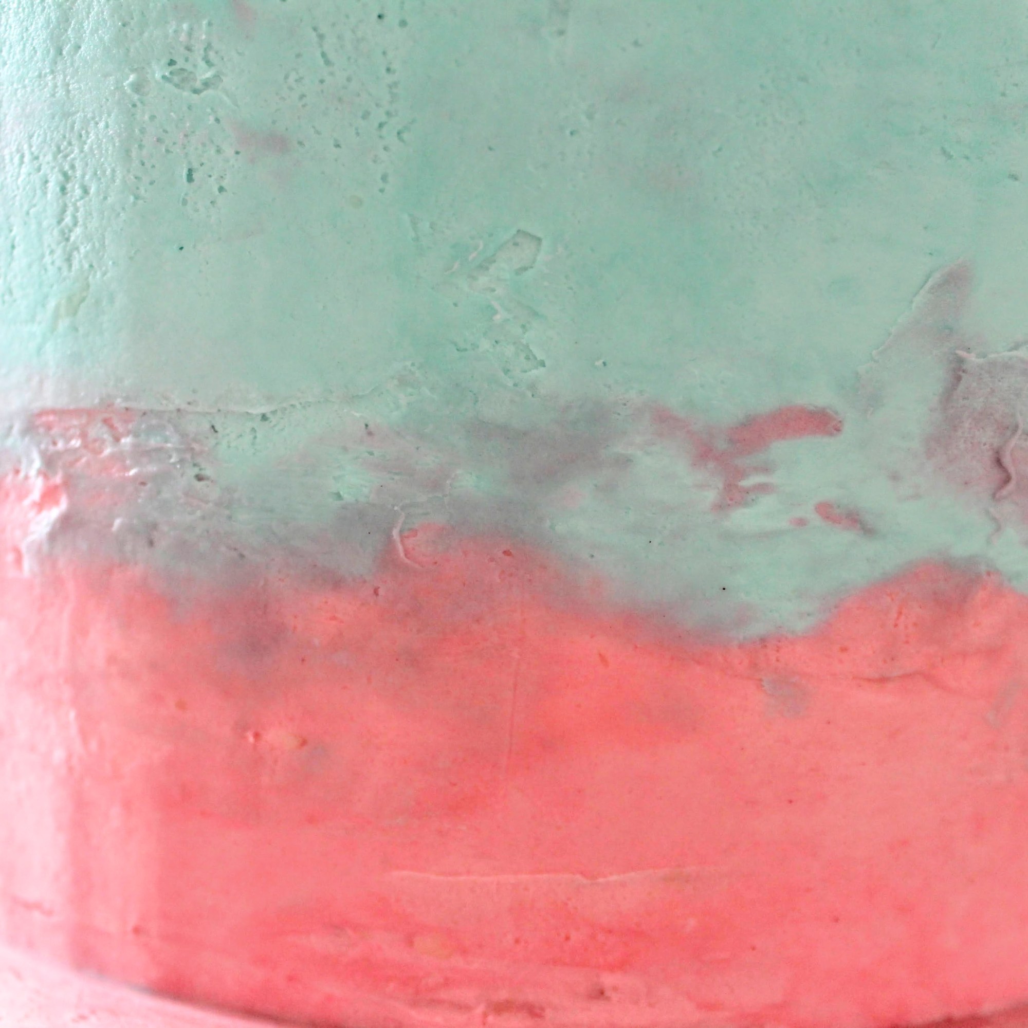 - For the pink drips, I mixed a few drops of the pastel pink food colouring into the cream of a 1:1 cream-to-chocolate ganache, then poured the runny ganache using a squeezy bottle (which I like to do for control of where those drips are going) from the top edge, at even spacings with varied pressure to get drips of different lengths.