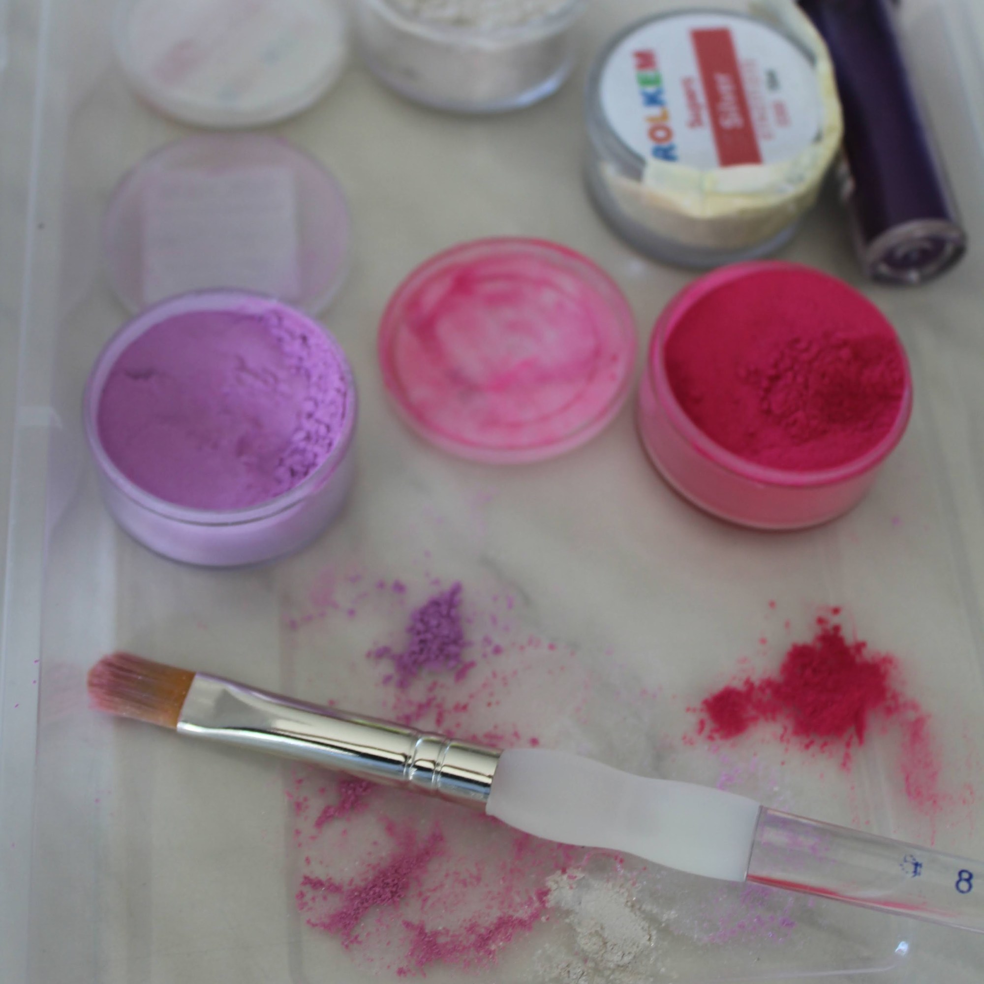 - I made white chocolate sea shells using a handy mould and painted them with a light edible lustre dust to give them a silvery shine