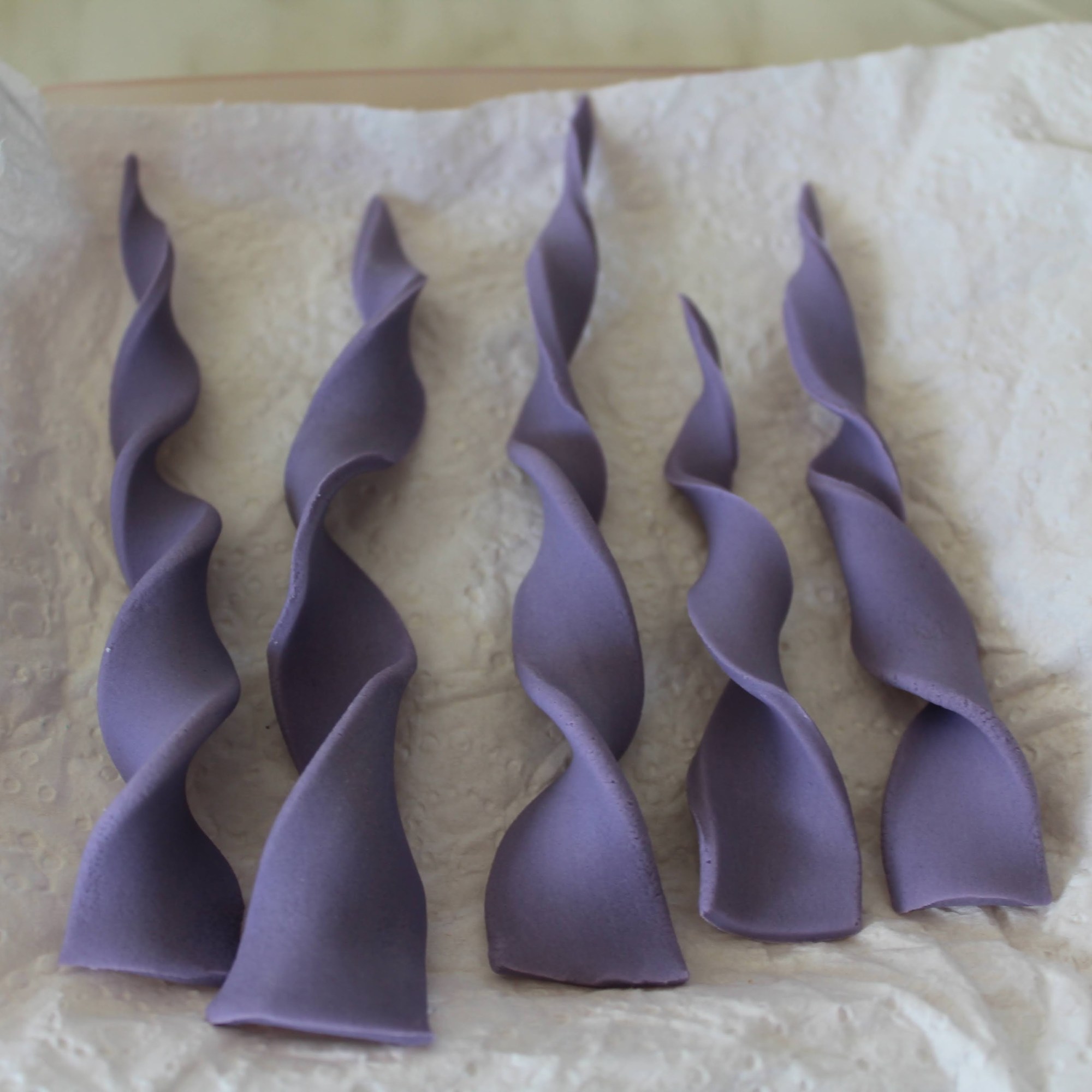 - The coral ‘spears’ were made of long triangles of fondant with tylose added, loosely coiled and left to dry on bumpy foam.