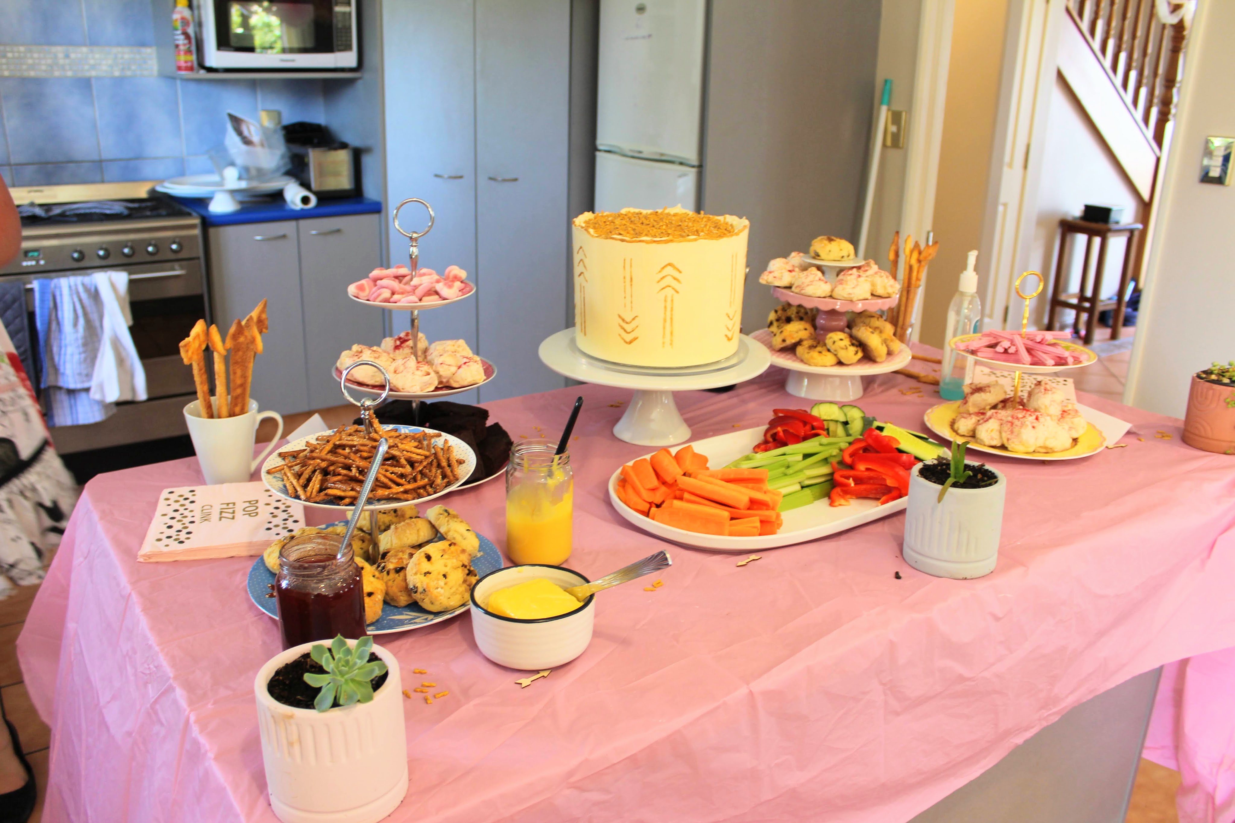 Oh yes, so Baby is a (big) wee girl and came along on her due date – pic later in the post 😉 Because she was barely 8 weeks old by G-Day, I took a lesser role in the party prep which was made possible by our lovely friend R who has been marooned in Christchurch since the pandemic and is a superb chef and baker! She made the majority of the treats you see in these photos, including the cake layers that I then decorated (mostly while baby wearing!!)